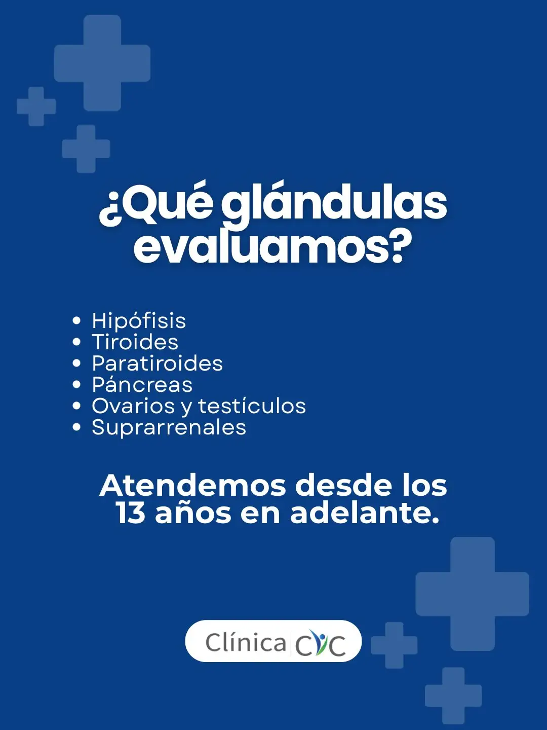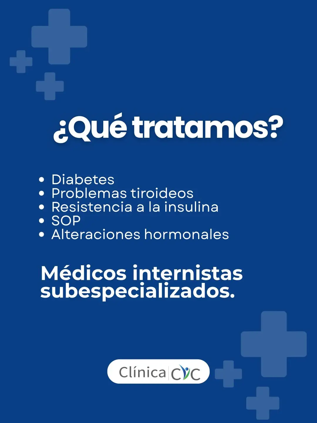 En Clínica CIC contamos con médicos internistas subespecializados en Endocrinología, expertos en la prevención, diagnóstico y tratamiento de trastornos tiroideos, diabetes, resistencia a la insulina y alteraciones hormonales en hombres y mujeres desde los 13 años.
